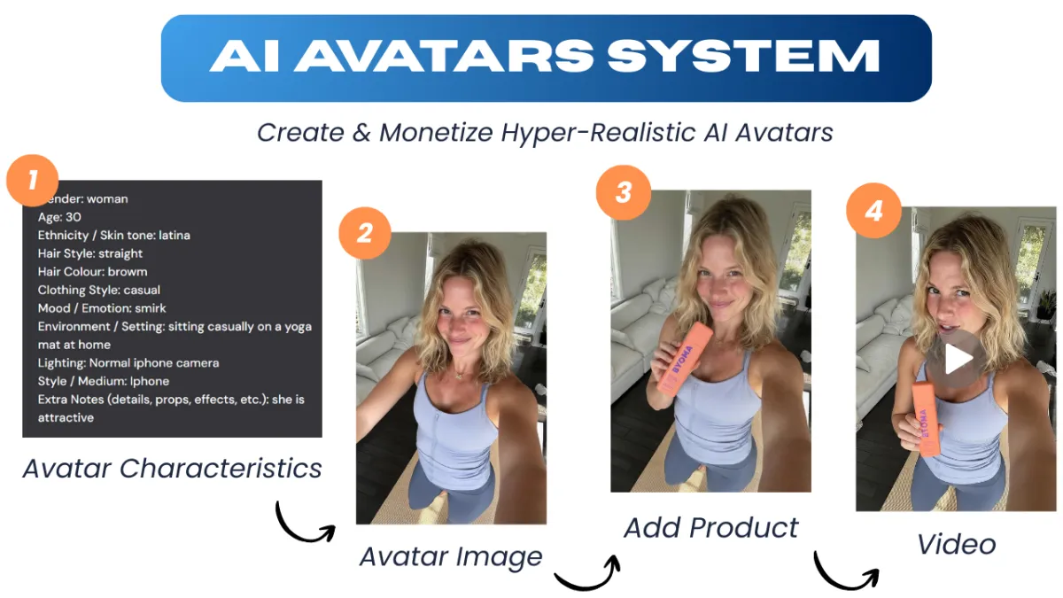 Want your avatar holding, wearing, or interacting with a product? The system seamlessly integrates any product into the scene.